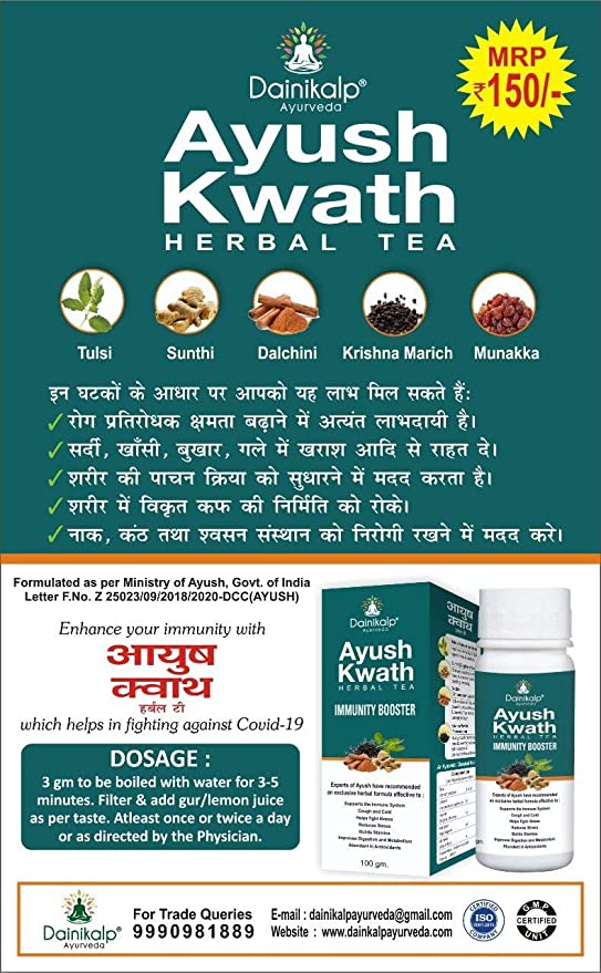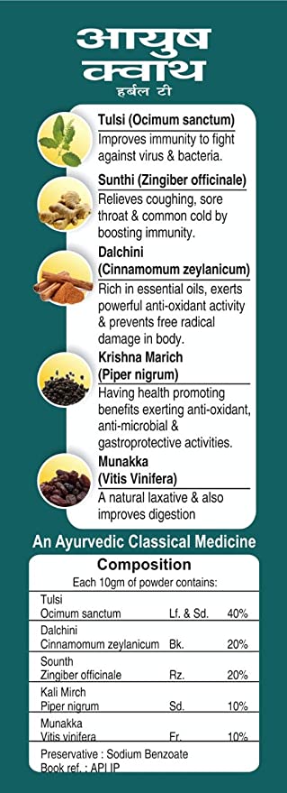 Herbal Tea immunity booster Experts of Ayush have recommended an exclusive herbal formula effective to: Supports the immune system, cough and cold, helps fight illness, reduces stress, builds stamina, improves digestion and metabolism, abundant in antioxidants.